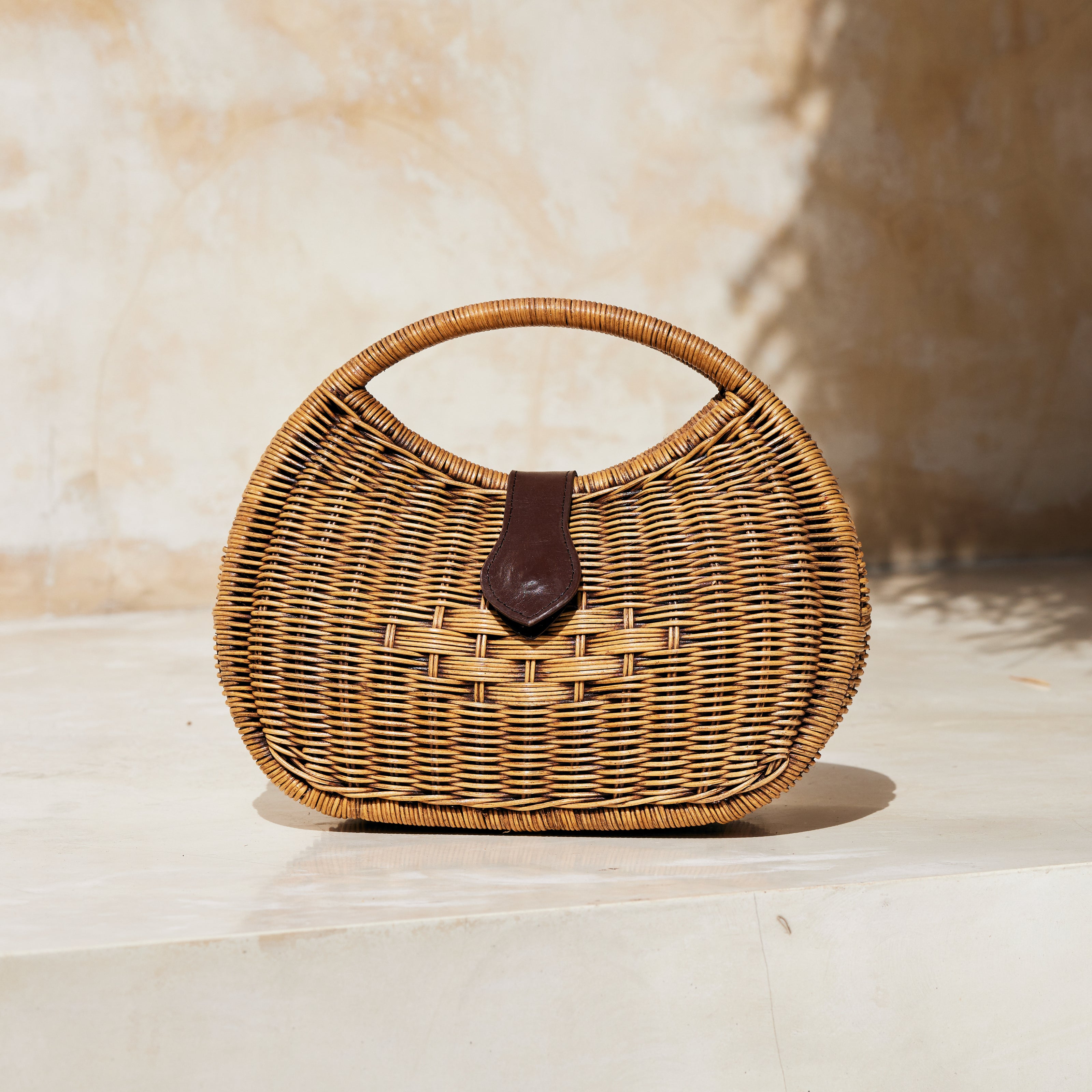 Handcrafted by women artisans working in the Tenganan Village in Eastern Bali, our artisans are master weavers with skills that have been passed down and perfected over generations. The bags are handwoven from renewable and sustainable Ata vine, hand-picked then dried under the sun. Each bag is then hung over a fire for several days, allowing the heat and smoke from the fire to cure them. This is what gives them their golden color, and makes them hard and durable so they will last a lifetime.